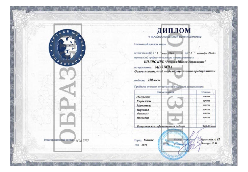 о профессиональной переподготовке по программе МВА
